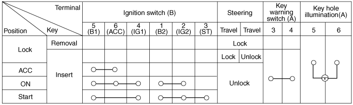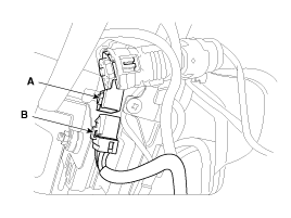 Отсоедините разъем выключателя зажигания (В) и разъем выключателя сигнализации ключа (А) из-под рулевой колонки.