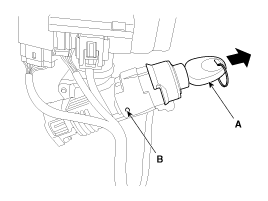 Если необходимо снять цилиндр замка с ключом (A), снимите цилиндр замка с ключом, нажав на стопорный штифт (B) ключом ACC.