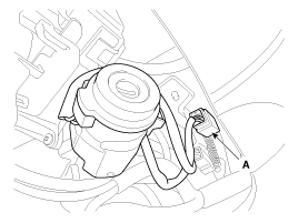 Снимите сигнализатор ключа и разъем иммобилайзера (А).
