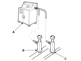 сервисный порт (B) и сервисный порт низкого давления (C), как показано,