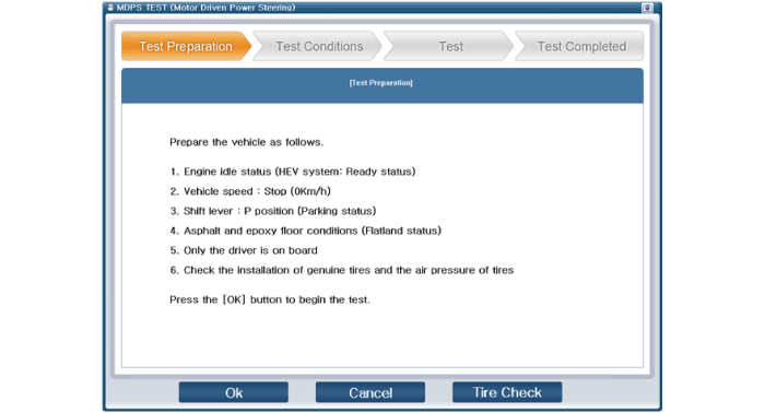 После выбора «модели автомобиля» и «системы» выберите «ТЕСТ MDPS» на экране выбора автомобиля GDS.