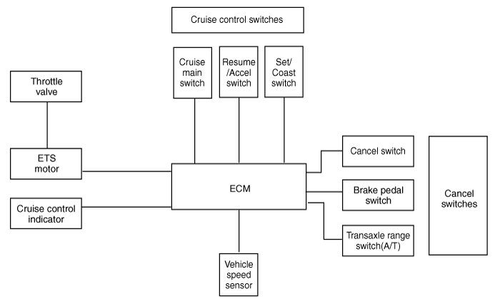 Управляет функциями автоматического управления скоростью с помощью переключателя Resume/Accel (переключателя Set/Coast)
