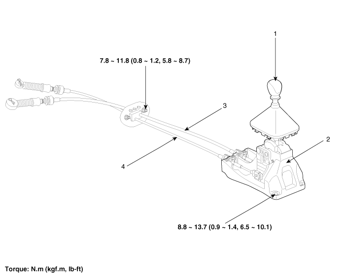 Hyundai Tucson: механическая система управления коробкой передач / компоненты рычага переключения передач и расположение компонентов
