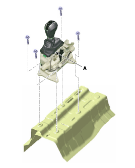 Снимите рычаг переключения передач (А) после удаления болтов.