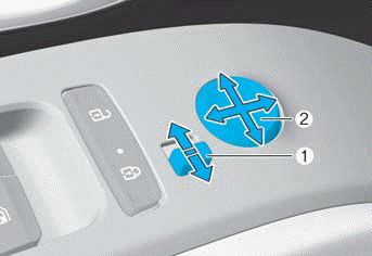 1. Переместите рычаг 1 либо в положение L (влево сторона) или R (правая сторона), чтобы выбрать сторону зеркало, которое вы хотите отрегулировать.