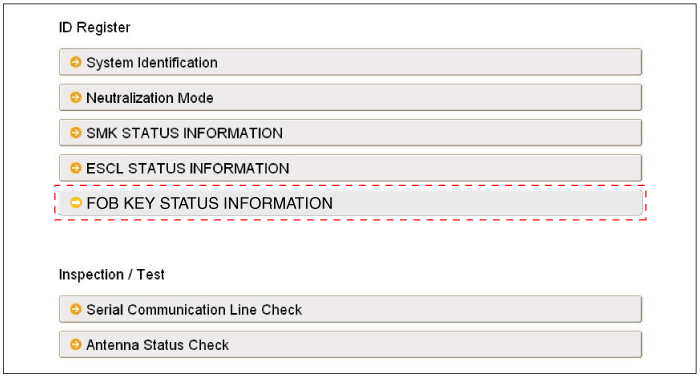 После ВКЛЮЧЕНИЯ ЗАЖИГАНИЯ выберите «ИНФО СОСТОЯНИЯ КЛЮЧА брелка».
