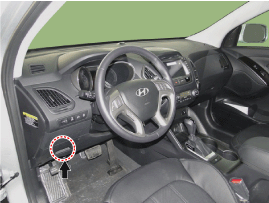 Подсоедините DLC-кабель GDS к разъему канала передачи данных (16 контактов) на нижней панели подушки безопасности со стороны водителя, включите питание GDS.