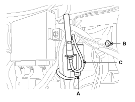 Ослабив гайку крепления (В), отсоедините разъем (А) и снимите ресивер (С).
