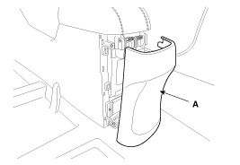 Отсоедините разъем. Ослабив гайки крепления накладки задней поднимающейся двери (13EA), снимите накладку (А).