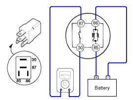 Подайте 12 В на клемму 85 и заземлите на клемму 86.
