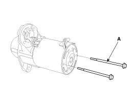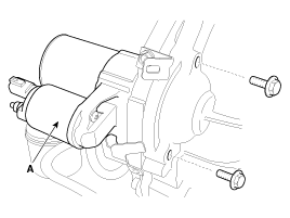 Открутите 2 болта, удерживающих стартер, затем снимите стартер (А).