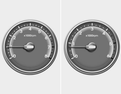 Тахометр показывает примерное количество оборотов двигателя в минуту (об/мин).