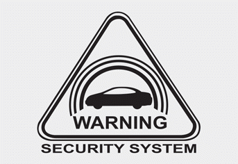 Автомобили, оборудованные противоугонной сигнализацией система имеет этикетку, прикрепленную к автомобиль со следующими словами: