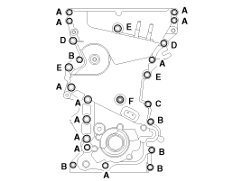 Звездочка коленчатого вала (A) > Направляющая цепи ГРМ (B) > Впускная звездочка CVVT (C) > Выпускная звездочка CVVT (D)