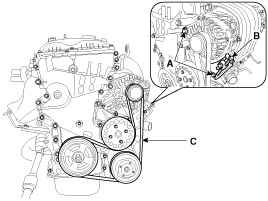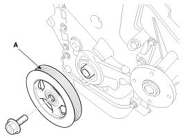 Снимите генератор (А). (См. Электрическая система двигателя — «Генератор»)