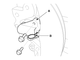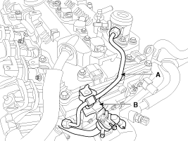 Отсоедините топливный шланг (A) и шланг PCSV (электромагнитный клапан управления продувкой) (B).