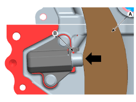 Установите автоматический натяжитель цепи ГРМ (А) и снимите стопорный штифт (В).
