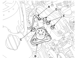 управляющий электромагнитный клапан) кронштейн (B). (См. раздел «Управление двигателем/топливо»).