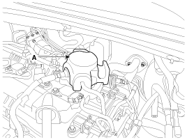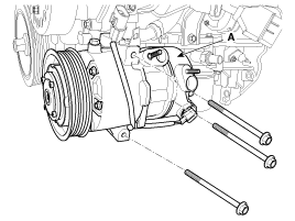 Установите компрессор кондиционера (А). (См. раздел «Отопление, вентиляция и кондиционирование воздуха» — «Компрессор кондиционера»).