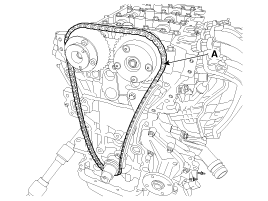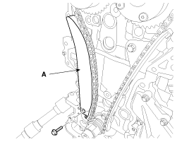 Снимите рычаг натяжителя цепи ГРМ (А).