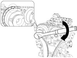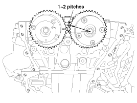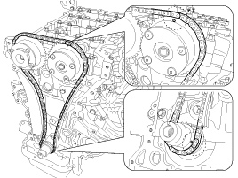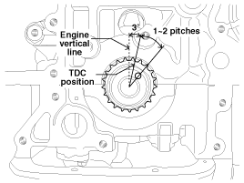 слегка повернут от положения ВМТ, как показано, когда цепь привода ГРМ