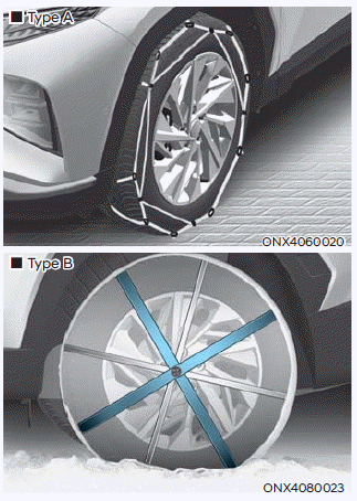Так как боковины радиальных шин тоньше, чем другие типы шин, они могут быть повреждены при установке некоторых виды цепей противоскольжения на них. Поэтому, рекомендуется использовать зимние шины вместо цепей противоскольжения. Если цепи противоскольжения должны использовать только оригинальные детали HYUNDAI. и установите цепи противоскольжения после проверки инструкции, прилагаемые к шине цепи. Ущерб, причиненный вашему автомобилю при неправильном использовании цепи противоскольжения не покрывается по гарантии производителя вашего автомобиля.