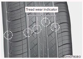 Если шина изнашивается равномерно, протектор индикатор износа выглядит как твердое тело полоса поперек протектора. Это показывает меньше 1/16 дюйма (1,6 мм) протектор, оставленный на шине. Замените шину когда это произойдет.
