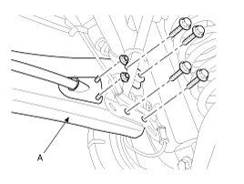 Ослабьте гайки и болты и снимите продольный рычаг (А) с задней осью.