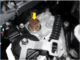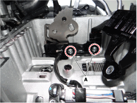 Отсоедините основной провод датчика температуры масла электромагнитного клапана, предварительно ослабив болт главного разъема (А).