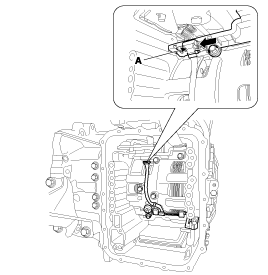 Отсоедините разъем датчика входной и выходной скорости (A) после нажатия на замок от основной проводки электромагнитного клапана.