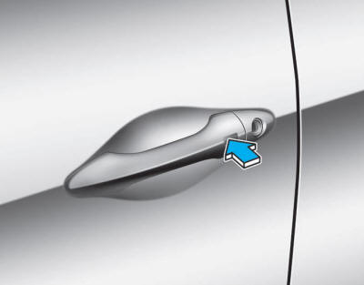 2. Либо нажмите кнопку дверной ручки, либо нажмите кнопку отпирания двери (2) на умный ключ.