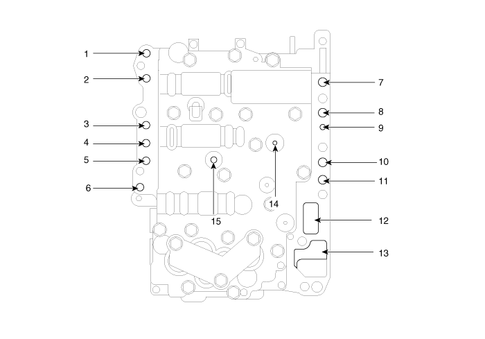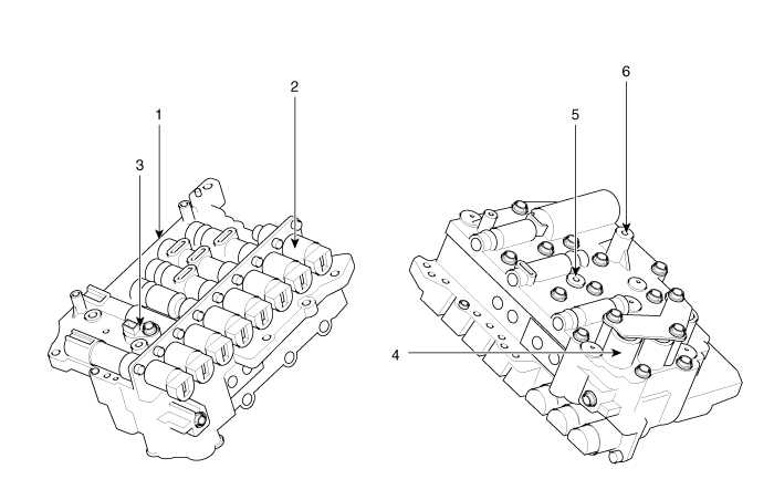 5. Отверстие подачи давления под приводным тормозом (UD/B) 6. Отверстие подачи давления тормоза низкого и заднего хода (LR/B) |