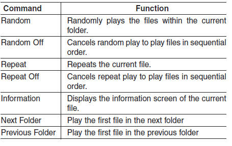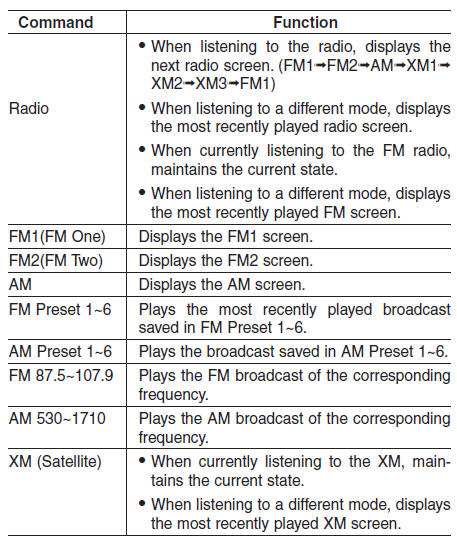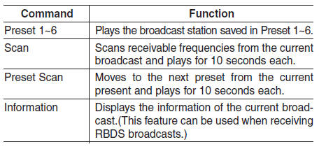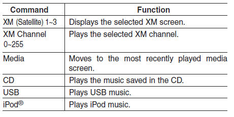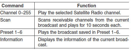 Команды, которые можно использовать при прослушивании спутникового радио.