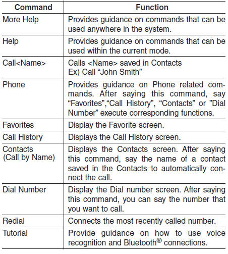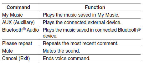 Аудиокоманды беспроводной технологии Bluetooth®: