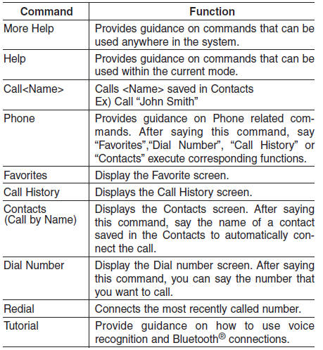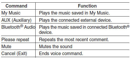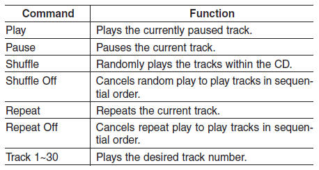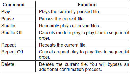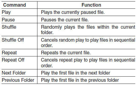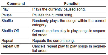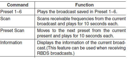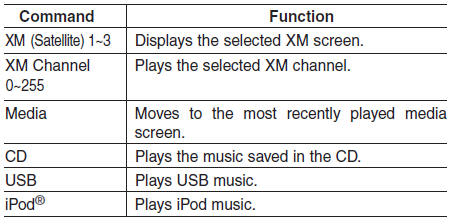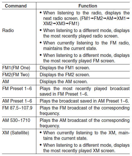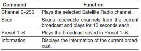 Команды, которые можно использовать при прослушивании спутникового радио.