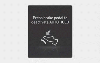 Если вы не нажали педаль тормоза, когда вы снимаете Auto Hold, нажимая кнопку Переключатель AUTO HOLD, звучит предупреждение и появляется сообщение.