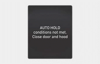 Когда вы нажимаете переключатель AUTO HOLD, если дверь водителя и капот не закрыто, звучит предупреждение и сообщение появляется на дисплее кластера.