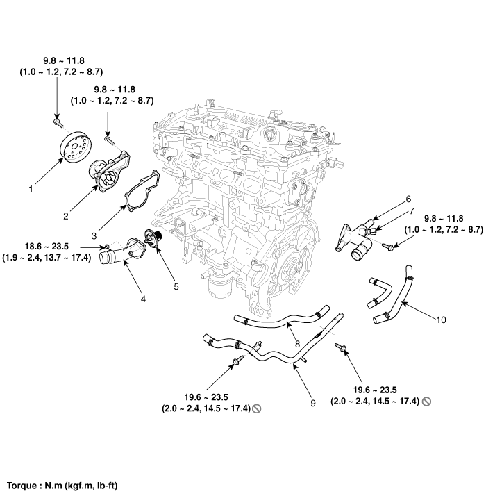 Hyundai Tucson: Система охлаждения / Водяной насос Компоненты и расположение компонентов