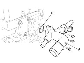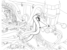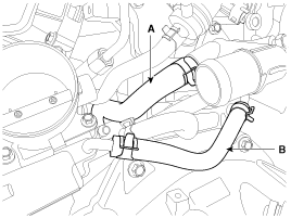 Отсоедините перепускной шланг (А) и шланг охлаждающей жидкости корпуса дроссельной заслонки (В).