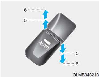 Потяните переключатель стеклоподъемника вверх до первого фиксированного положения (5). Освободить окно переключаться, когда вы хотите, чтобы окно остановилось.