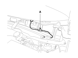 Отсоедините разъем антиобледенителя ветрового стекла (А) от тяги электродвигателя стеклоочистителя.