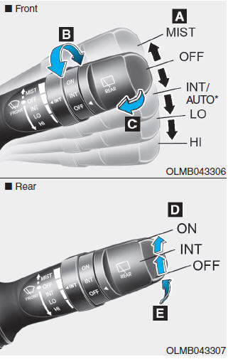 INT — прерывистый режим работы стеклоочистителя (при наличии)
