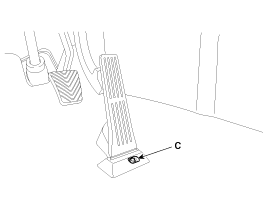 Снимите установочные гайки (В) и болт (С), затем снимите модуль педали акселератора.