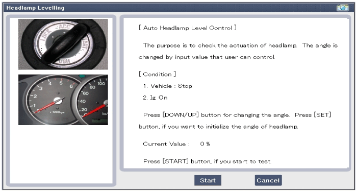Чтобы проверить код неисправности системы регулировки угла наклона фар, выберите «Диагностические коды неисправностей».