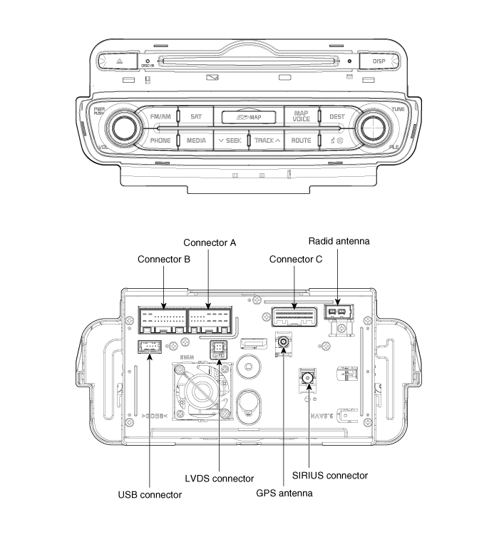 | Разъем головного устройства AVN (аудио/видео и навигация) |
