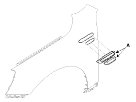С помощью отвертки или съемника снимите декоративную накладку крыла (А).