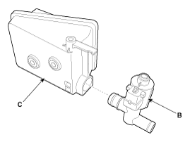 Отсоедините вентиляционный шланг (В) от воздушного фильтра топливного бака и клапана закрытия адсорбера.