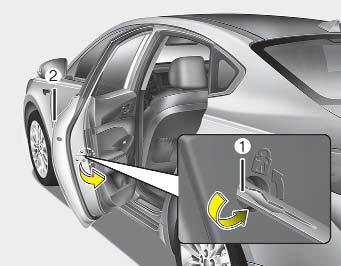Чтобы открыть заднюю дверь, потяните снаружи дверная ручка (2).
