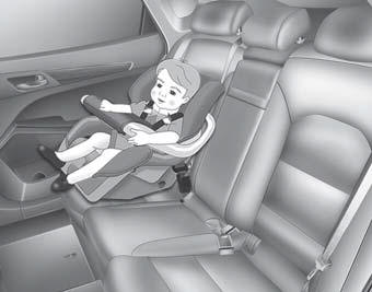 Повернутое назад детское кресло обеспечивает удерживающее устройство с поверхностью для сидения против спины ребенка. система ремней удерживает ребенка в место, а в случае аварии действует на держите ребенка в кресле и снижает нагрузку на шею и спинной мозг.