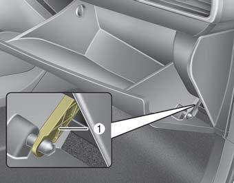 2. При открытом перчаточном ящике потяните поддерживающий ремень (1).